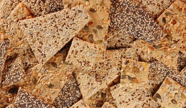 Kn�ckebrot revolution�r; kr�ftig, nussig, unvergleichlich. Enth�lt Sonnenblumenkerne, Sesam, Leinsaat und K�rbiskerne. Der eingebackene K�se �berrascht den Gaumen.